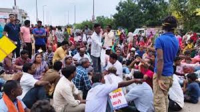सड़क निर्माण की मांग को लेकर ग्रामीणों का चक्काजाम, बस चालक की रिपोर्ट पर मामला दर्ज