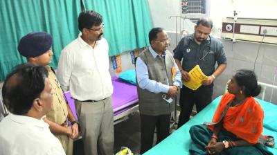 लुत्ती डैम टूटने से प्रभावित ग्रामीणों का हाल चाल जानने जिला अस्पताल पहुंचे कृषि मंत्री नेताम