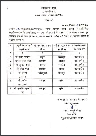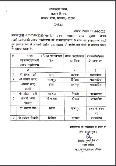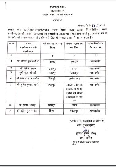 नायब तहसीलदारों की नई पदस्थापना