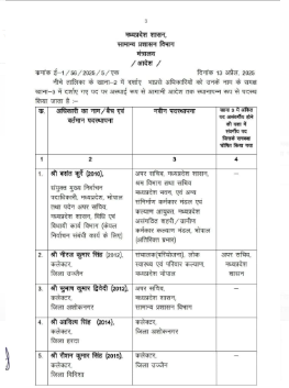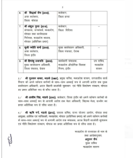 इसके अलावा जनसंपर्क विभाग के संचालक और मध्य प्रदेश माध्यम के कार्यपालक निदेशक का अतिरिक्त प्रभार संभाल रहे अंशुल गुप्ता को कलेक्टर विदिशा बनाया गया है। वहीं, इंदौर की अपर कलेक्टर ज्योति शर्मा को मुख्य कार्यपालन अधिकारी जिला पंचायत देवास नियुक्त किया गया है। देवास जिला पंचायत के मुख्य कार्यपालन अधिकारी हिमांशु प्रजापति को मध्य प्रदेश औद्योगिक विकास निगम, इंदौर का कार्यकारी संचालक बनाया गया है।