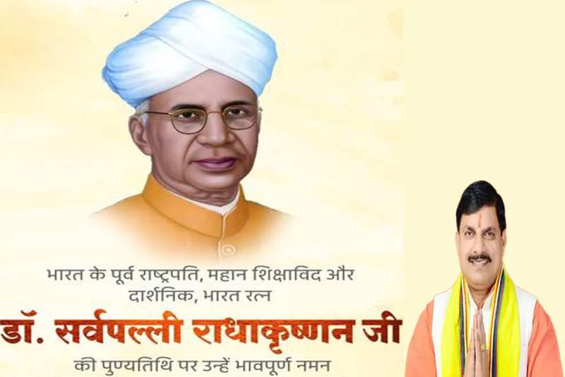 मुख्यमंत्री डॉ. यादव ने पूर्व राष्ट्रपति स्वर्गीय डॉ. राधाकृष्णन की पुण्यतिथि पर उन्हें श्रद्धांजलि अर्पित की