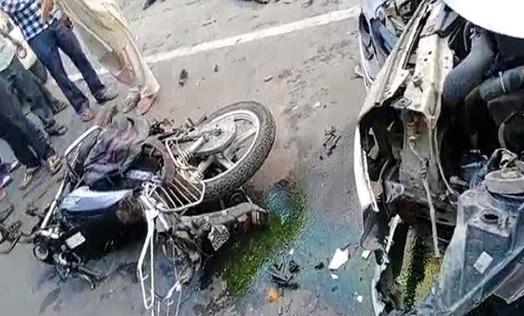 आगे जा रही बाइक से टकराई कार, चालक की मौके पर मौत