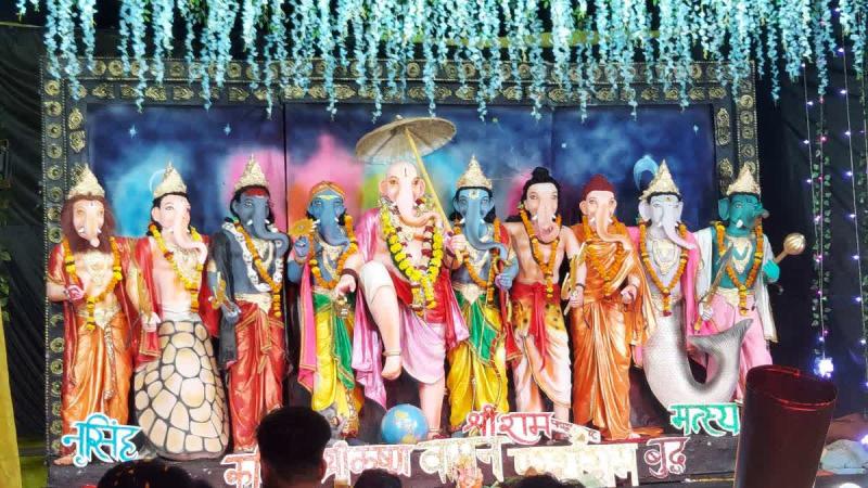 शहर के खाई रोड पर गणेश जी को विष्णु के दस अवतारों के रूप में दर्शाया गया. मत्स्य से लेकर कल्कि अवतार तक, हर स्वरूप गणपति बप्पा की प्रतिमा में समाहित रहा. झांकी प्रमुख शुभम सेन ने बताया कि इसका उद्देश्य धर्म के प्रति जागरूकता फैलाना है.