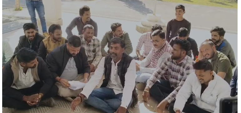 सागर: करणी सैनिकों ने एसपी कार्यालय के बाहर कीर्तन कर जताया विरोध