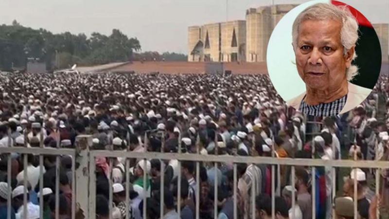 ढाका। बांग्लादेश में हिंसा किसी कीमत रुकने का नाम नहीं ले रही है, हद यह है कि ढाका यूनिवर्सिटी के परिसर में शनिवार को छात्र नेता शरीफ उस्मान हादी को सुपुर्द-ए-खाक करने साथ ही मौजूदा सरकार को 24 घंटे का अल्टीमेटम दे दिया गया है। हादी के अंतिम संस्कार के दौरान यूनिवर्सिटी के आस-पास भारी संख्या में लोगों का हुजूम मौजूद रहा। खास बात यह रही कि हादी के जनाजे में अंतरिम सरकार के मुख्य सलाहकार मोहम्मद यूनुस भी हादी के जनाजे में पहुंचे और उनका गुणगान भी किया।