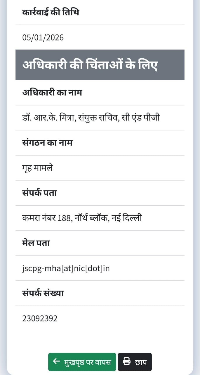 नई दिल्ली। मध्यप्रदेश की राजधानी भोपाल से जुड़े बहुचर्चित शारिक मछली मामले में अब प्रधानमंत्री कार्यालय (पीएमओ) ने संज्ञान ले लिया है। शिकायतकर्ता अभिषेक जैन द्वारा की गई शिकायत को पीएमओ ने गृह मंत्रालय से जुड़े संयुक्त सचिव स्तर के वरिष्ठ अधिकारी को सौंप दिया है। इस घटनाक्रम के बाद मामले की गंभीरता और बढ़ गई है तथा केंद्रीय स्तर पर निष्पक्ष जांच की उम्मीद जगी है। प्राप्त जानकारी के अनुसार, पीएमओ ने यह शिकायत गृह मामलों से संबंधित संयुक्त सचिव डॉ. आर.के. मित्रा को अग्रेषित की है। माना जा रहा है कि प्राथमिक जांच और तथ्यों के परीक्षण के बाद गृह मंत्रालय द्वारा आगे की आवश्यक कार्रवाई की जाएगी।