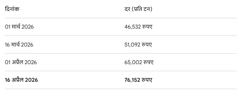 पेट्रोलियम उत्पाद होने के कारण कच्चे तेल की महंगाई ने तारकोल के गणित को बिगाड़ दिया है। VG-30 ग्रेड के तारकोल की कीमतों में हुई वृद्धि इस प्रकार है: