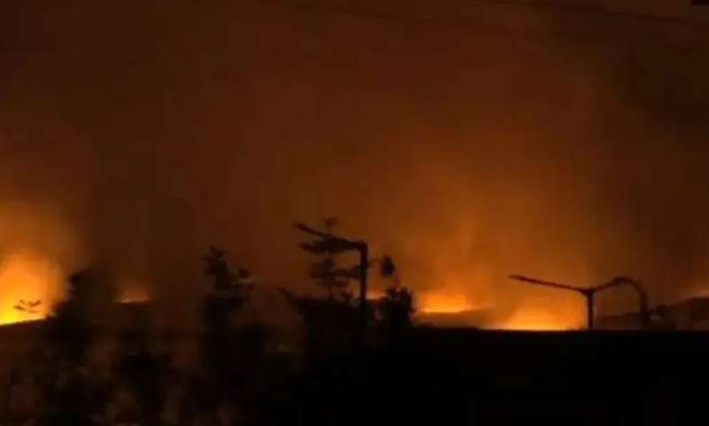विस्फोट के बाद लगी आग