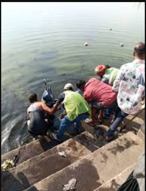 तालाब में गिरी शिक्षिका, एक्टिवा भी साथ में डूबी; सुरक्षित बचाव
