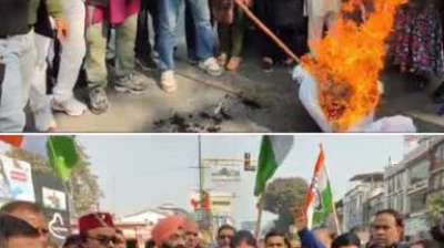राहुल की न्याय यात्रा पर हमले के विरोध में कांग्रेस ने भाजपा सरकार का पुतला फूंका